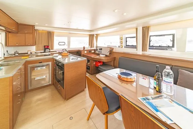 Saloon on the Lagoon 450F flows easily into the cockpit, and all the space is bright and open so you hardly notice whether you are inside or outside. You can put your holiday on the complete new level by choosing this boat to explore and enjoy a unique sailing experience.