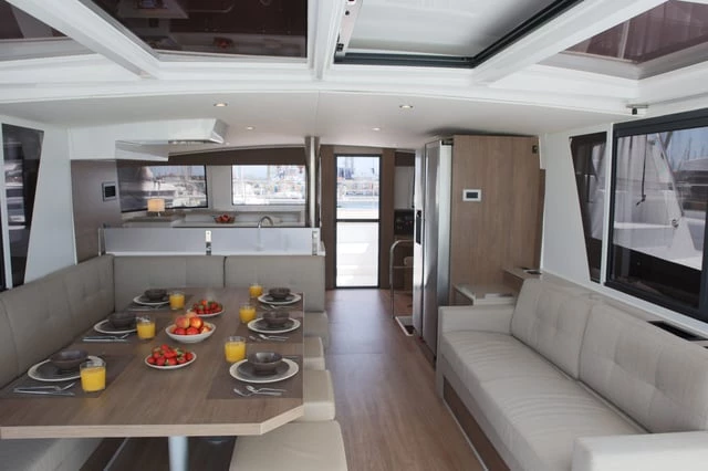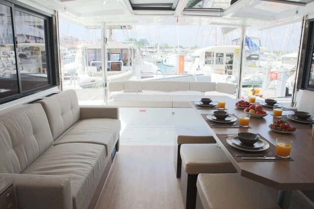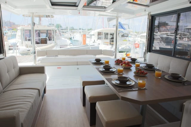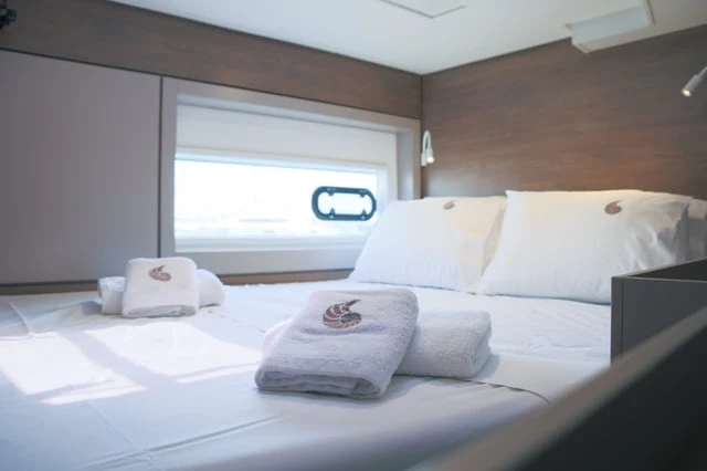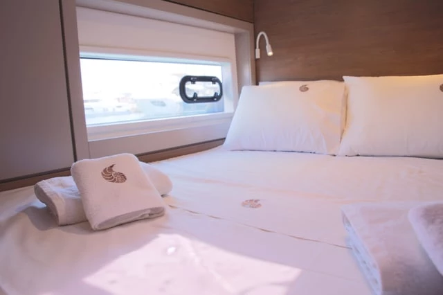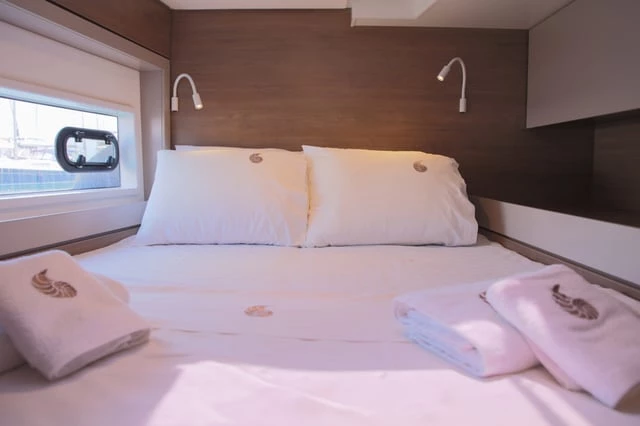 ALINA II is a 14.28m / 46ft Catamaran Luxury Yacht built in 2023 by Bali Catamarans. She sleeps 11 guests in 5 cabins, with a capacity of 12. The guest cabins comprise 4 cabins with double beds and a cabin with bunk beds.