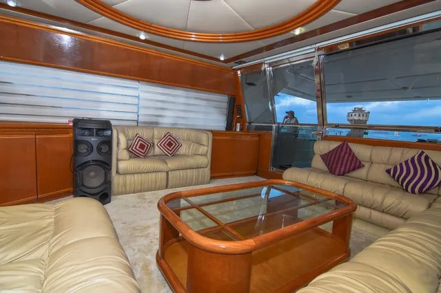 Being an 80 footer the capacity of the yacht for day cruising or parties is maximum upto about a 40 people on board addition to a captain and 3 crew members on board.