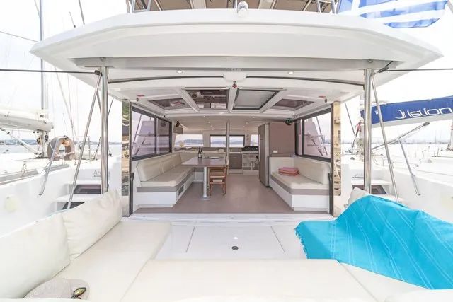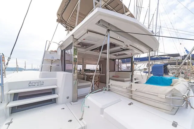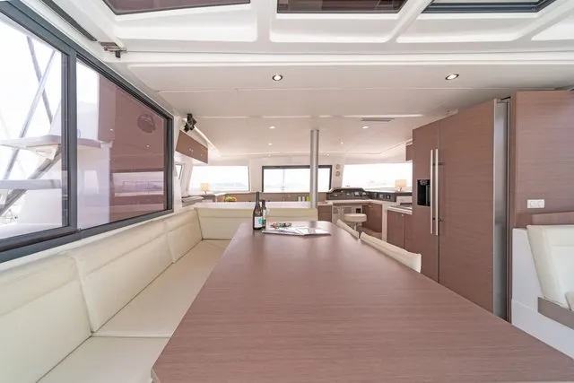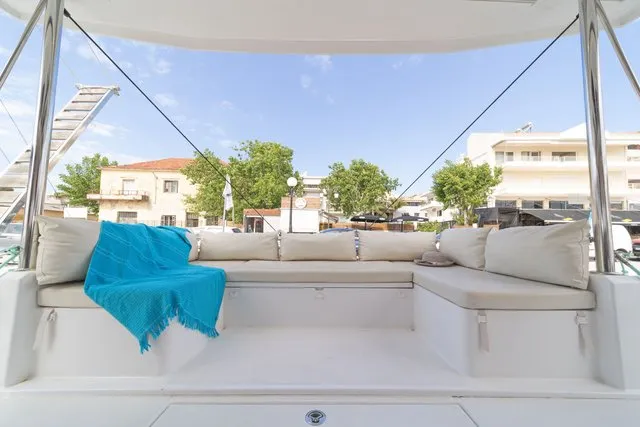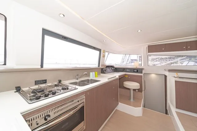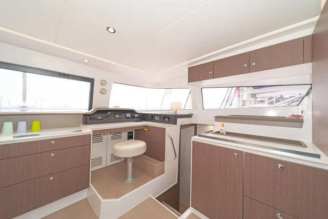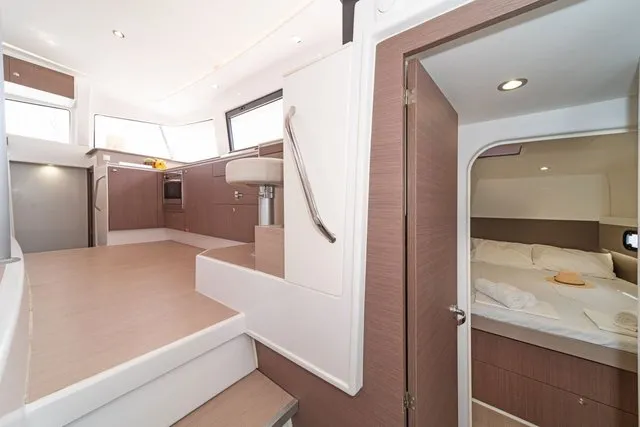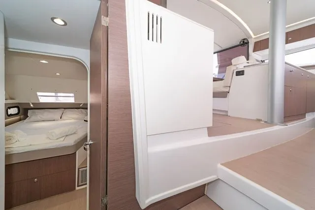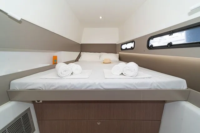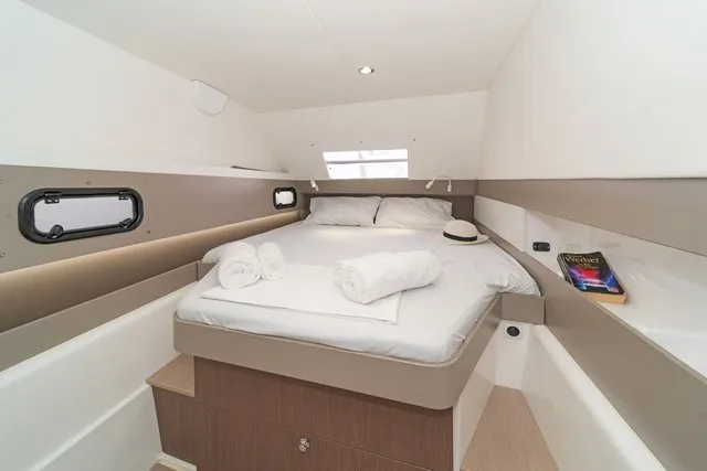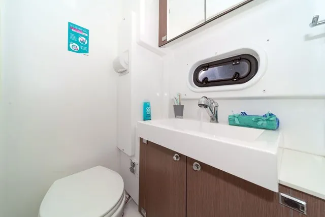 Thanks to three opening ports, there’s an abundance of natural light and ventilation. The ample berth has side access, and there’s a nice shelf for books and knickknacks. On a yacht with abundant creature comforts, this space is certainly in keeping with the overall theme.