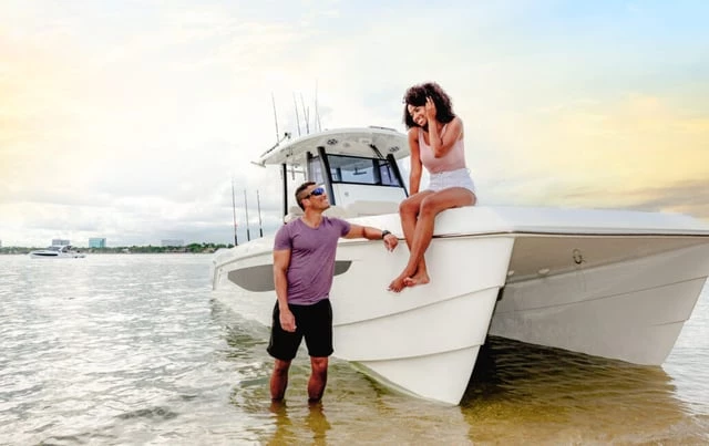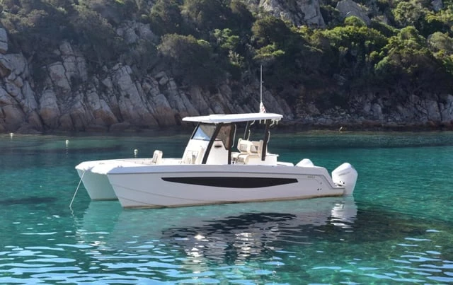 Aquila 28 is not just a power catamaran; it’s a testament to innovative design and meticulous attention to detail. Its elegant aesthetics are matched by a sporty demeanor, making it a true masterpiece on the water. The cleverly designed cockpit maximizes every inch of space, providing you with an environment that’s as practical as it is luxurious.