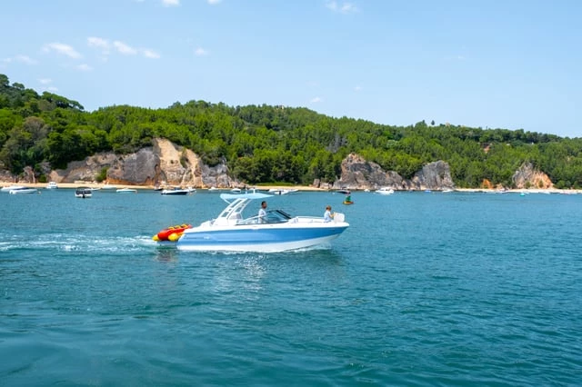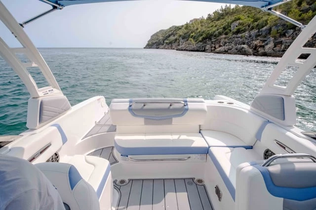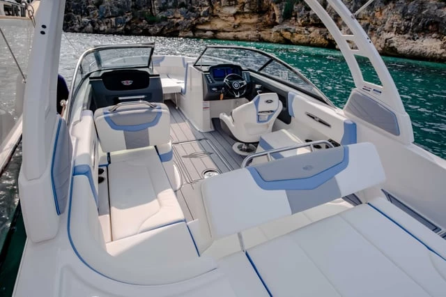Our 2023 Chaparral 247 speedboat is perfect for enjoying a fun and relaxing day with the family. Take the opportunity to try various water sports with a paradisiacal backdrop.