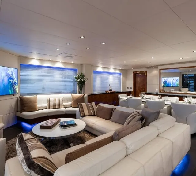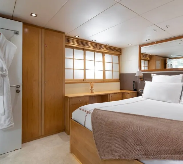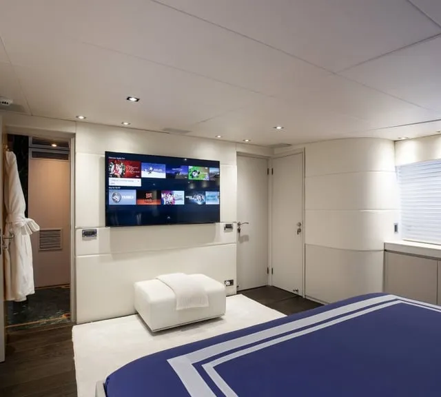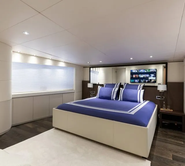 BROOKLYN, is an Exquisite 37-Metre Yacht that guarantees to delight the most discerning travelers and seafaring enthusiasts. Impressive leisure and entertainment facilities includes a sun deck with custom furniture and a large sun pad on the bow which make her the ideal motor yacht for socializing and entertaining with family and friends. She boasts a swim platform, making accessing the crystal-clear waters of the Mediterranean effortless. BROOKLYN is the perfectly sized vessel for family holidays on the water boasting five spacious staterooms that can be configured to sleep up to 10 guests. Her voluminous Full-Beam Master Suite on main deck with sauna includes a luxurious en-suite bathroom with a sauna and a separate area that can be used as an office . Her remaining VIP, Double, and Twin Staterooms ensure guests enjoy the height of luxury, privacy, and exclusivity.