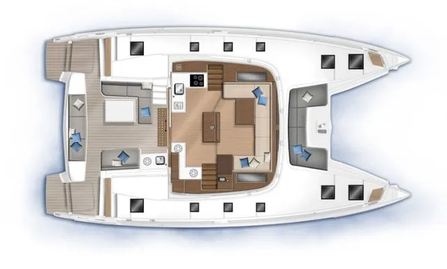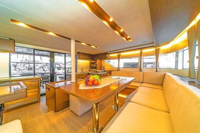 The 50 has a flybridge with dual access and a helm station provide perfect visibility. A large open cockpit faces out to sea, large stern skirts enable easy access to the boat, and a large modular dining area with removable bench seats welcomes children and adults alike.