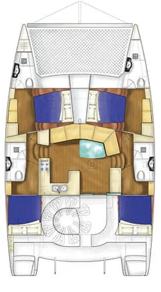 KIRSTY B is a 13.71m / 45ft Catamaran Luxury Yacht built in 2014 by Matrix designed by Vision Matrix. Sleeping 8 guests in 4 cabins. Cruising at 7.00 kn/ph. The guest cabins comprise four double cabins and en-suite bathroom facilities.