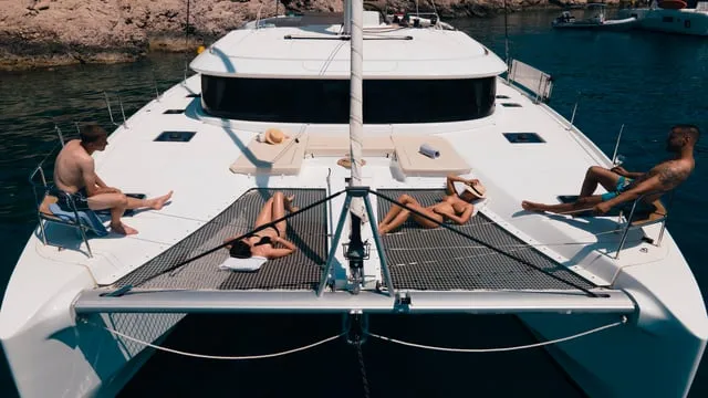 Aboard “Luna”, the inside embraces a refined, elegant and functional style. Wide hulls offer even more space and comfort. There are no borders between inside and outside thanks to a large sash bow window in the front. There is also a great connection between front cockpit and salon. The boat is fully equipped for your complete comfort, with some notable mentions such as Generator, Air Conditioning both in the saloon and in the bedrooms, and Water Maker which ensures a constant supply of fresh potable water. The mentioned equipment should allow our guest not to rely on Marinas too much and should allow much more flexibility during their stay.