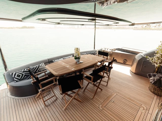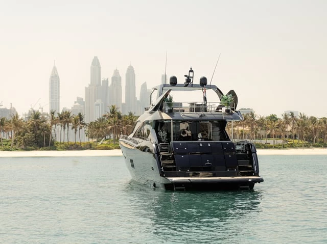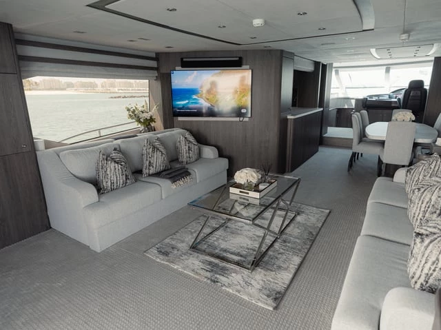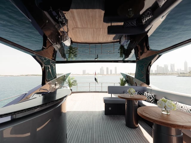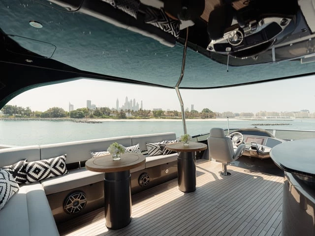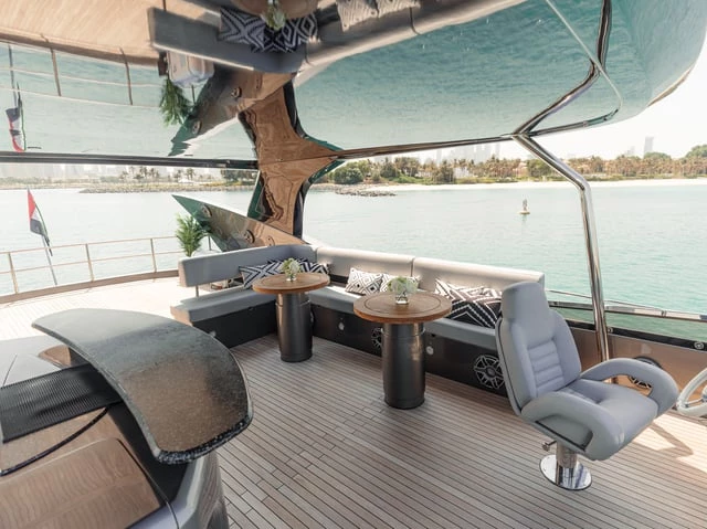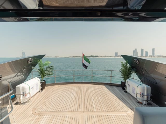 Powered by high-performance twin engines, Matrix promises a smooth and comfortable journey. Whether you’re cruising through Dubai Marina, anchoring at the Burj Al Arab, or simply relaxing onboard, this yacht delivers the perfect setting for a memorable day on the water.