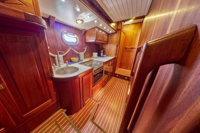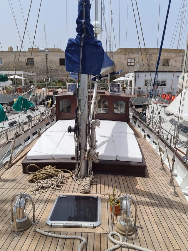 This splendid 20-meter schooner has a steel hull and mahogany infrastructure, while the deck is made of teak. Designed and customized for the owner, it exudes British elegance and absolute comfort for spending pleasant days at sea. With 9 berths, this sailing vessel will have you daydreaming as you listen to the lapping of the waves on the blue waters of Sicily.