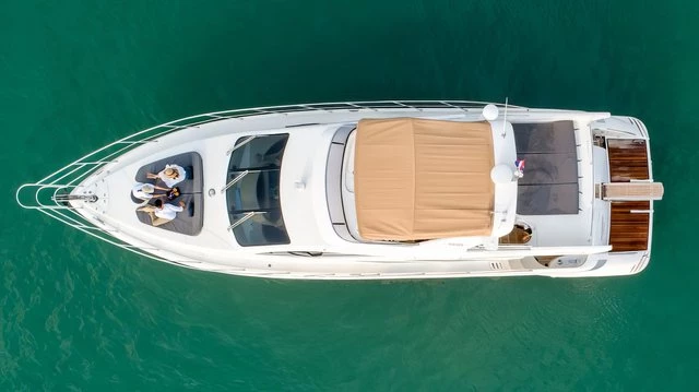 The Azimut 55e Flybridge is a superb boat, example of ingenuity and imagination in modern cruising yacht design. She has a generous saloon with a spectacular open plan layout creating a breathtaking full-length vista from the teak decked cockpit to the inside helm. In true Azimut style, her hull is built for smooth, passage and excellent handling in the most challenging sea conditions.