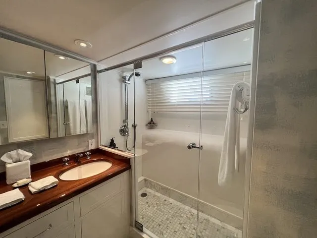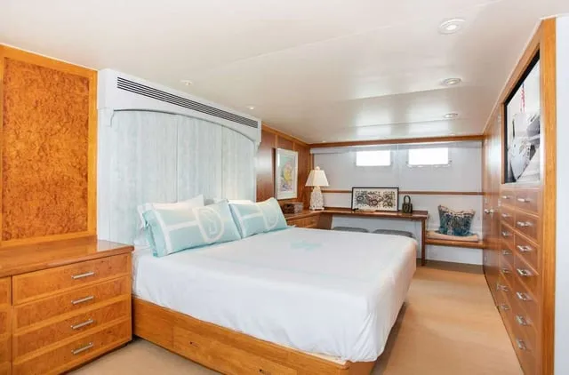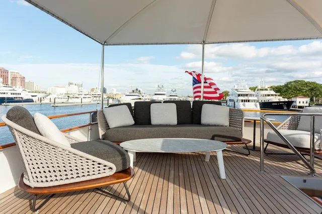 Built by Burger Yachts in 1966, SOVEREIGN is a completely restored and updated classic motor yacht with all the amenities of a modern yacht. SOVEREIGN has been continuously well maintained & upgraded with her most recent refit in 2019. With an interior described as “Palm Beach chic” she is outfitted with a beautiful collection of mid-century modern antique furnishings – a collaboration between Ellen Kavanaugh Interiors and Dana Andrews at American custom cabinetry.