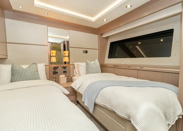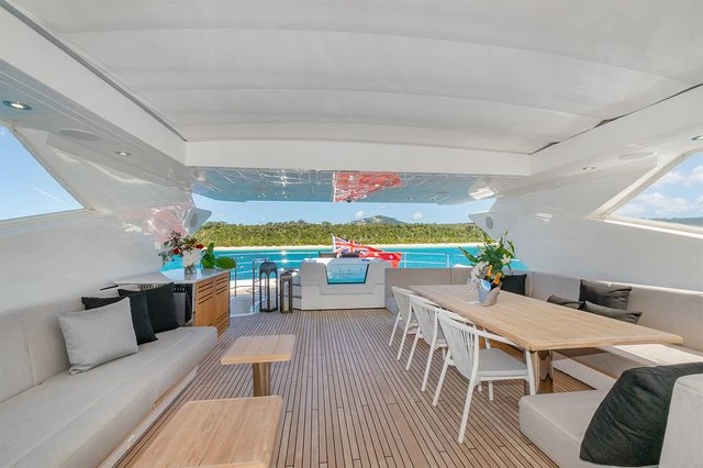 SUNSET’s talented and friendly crew ensures every moment on board is seamless, whether you’re indulging in a jacuzzi soak on the sundeck, basking on the spacious sun lounges, or embracing the thrill of her signature Sunseeker sports performance.