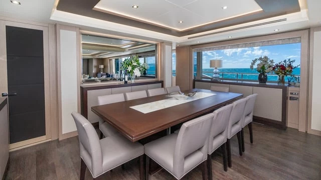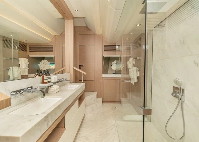 With a bold, sporty profile and a meticulously designed interior finished in silver oak, SUNSET effortlessly blends sophistication with high-performance engineering. Accommodating 10-12 guests in five luxurious cabins, including a full-beam master suite, she offers an unparalleled charter experience.