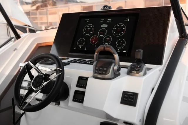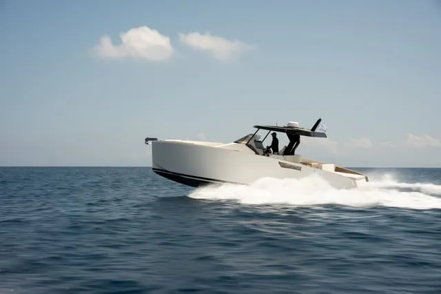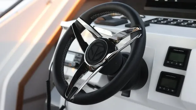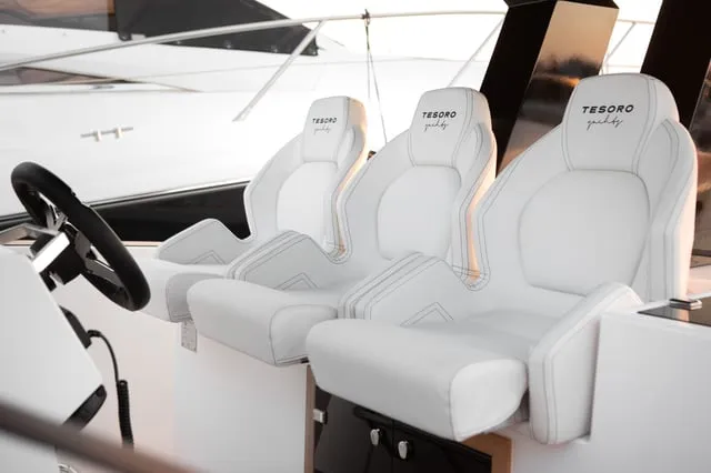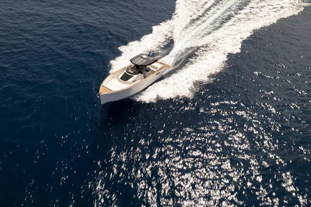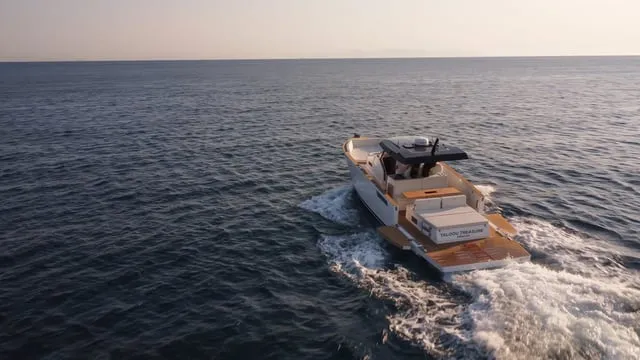 T40 is one of the most iconic models of its range. The exterior features a stern solarium that makes a massive sunbed with the dinette table conversion added to a big swim platform, while its sturdy roof pillars integrated into the bulwarks, make a single solid piece with the hull offering stability and extreme space on the deck.