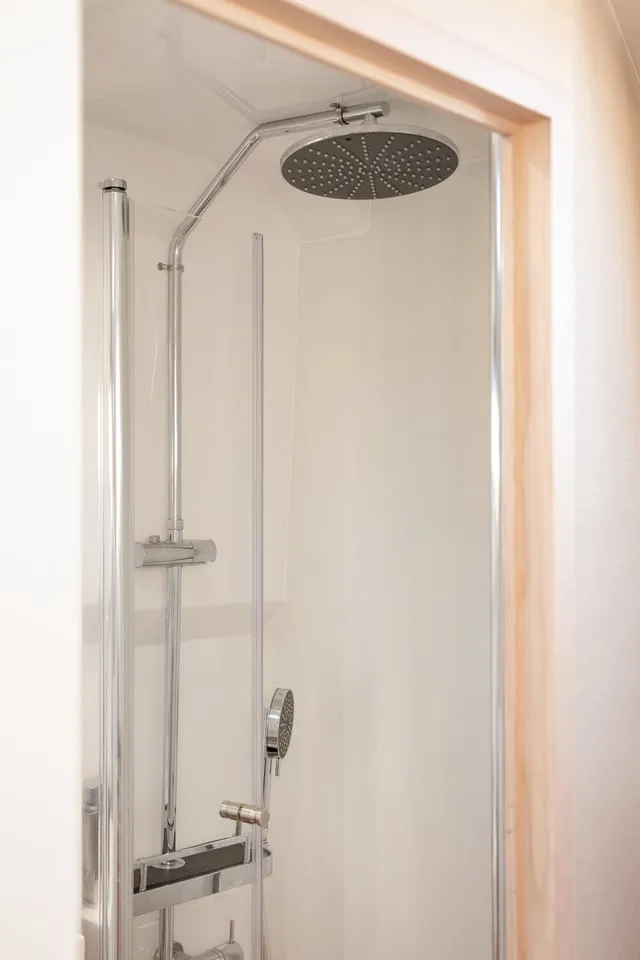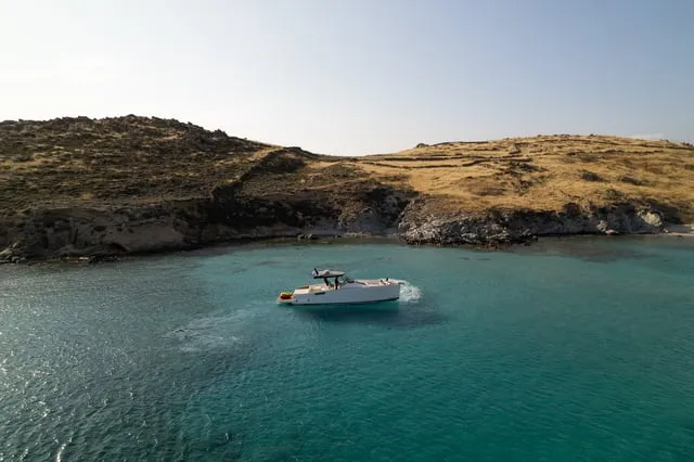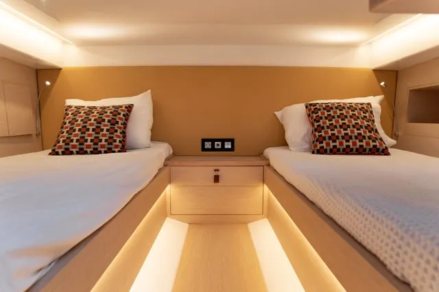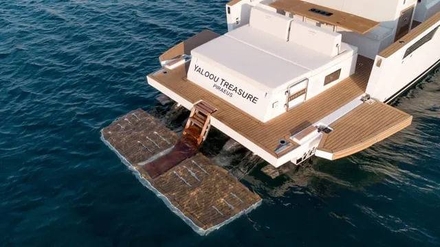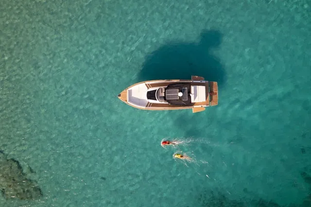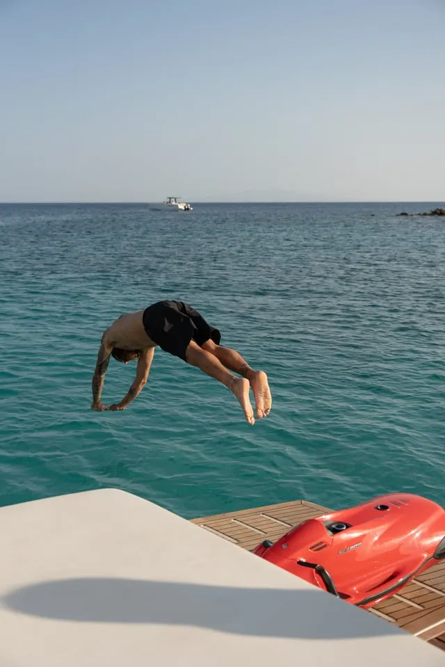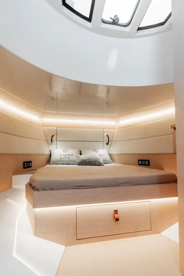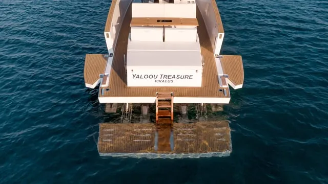 The new hull windows, in addition to the cabin’s skylight, fill the spacious interior of two cabins with natural light and ventilation. Its unique ambiance is enriched with exclusive details that promise an unforgettable experience. Her utmost feature the opening sides and the hydraulic platform, making its guests become one with the water.