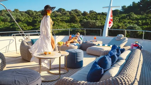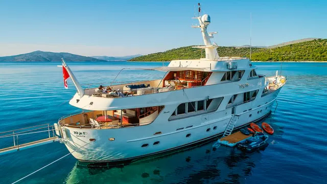 Fully customized Benetti Classic 115′(35m) TO je TO is in impeccable condition making her an ideal charter option. She had her extensive refit in 2012, 2020 a nd l ast i n April 2022. The yacht’s sophisticated exterior design and engineering are the work of Benetti, and her luxurious and elegant interior was designed by Zuretti, Mauro Zanon. This classic luxury 3 decks yacht interior has been designed to comfortably accommodate up to 8 guests in 4 en-suite cabins where attention is put into details. She can carry up to 6 crew onboard in 4 cabins to ensure a relaxed luxury yacht experience. There is amazing and very comfortable sunbathing and observation area in which you can relax and enjoy your moments with your family, friends. TO JE TO is a prime yacht for complete enjoyment and experience.