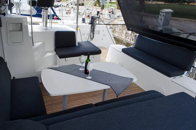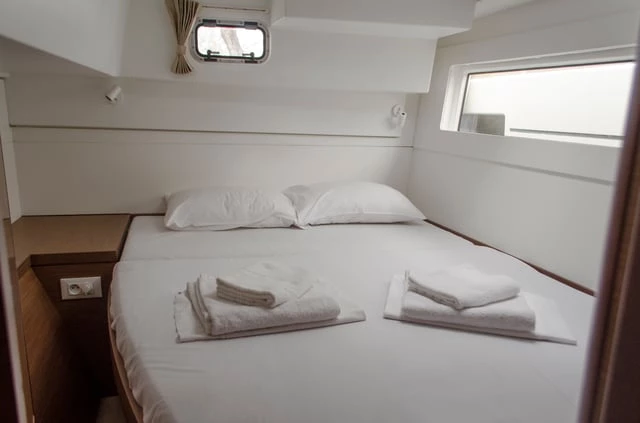 Venus is a Lagoon 40 built in 2018, has four double cabins, two single cabins, four bathrooms and one smaller bathroom for the crew outside. Can accommodate up to 10 guests.