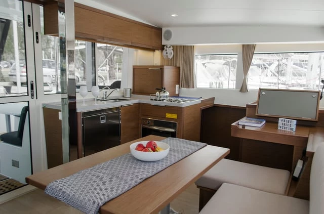 Venus the prefect mini – max of Catamarans, emphasizes on the outside space and on the common areas that symbolize the new Lagoon boats. With two Yanmar engines of 45 HP with turbo for quick navigation and greater maneuvering in the harbor.