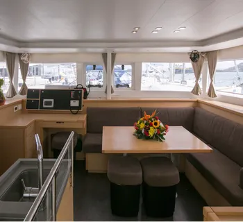 Lagoon 450F. Catamaran (12 guests) – Cabins (4+2) – Berths (8+2+2).